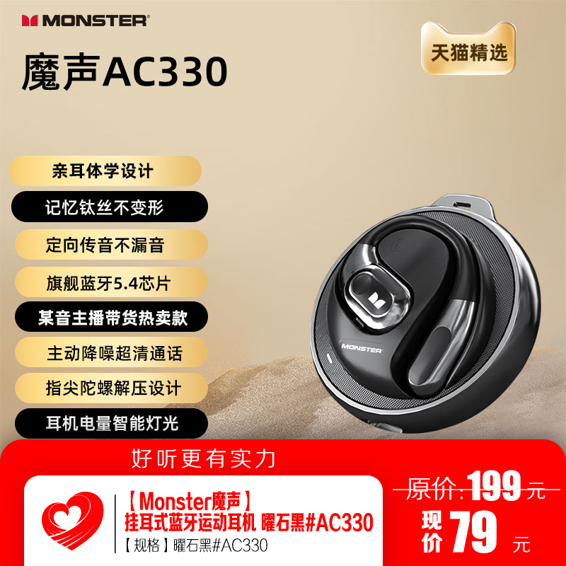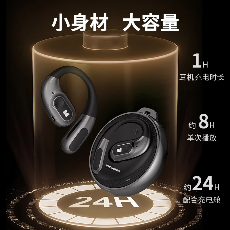 【Monster魔声】挂耳式蓝牙运动耳机 苹果同厂触控久戴不痛震撼音效稳固不掉 曜石黑#AC330