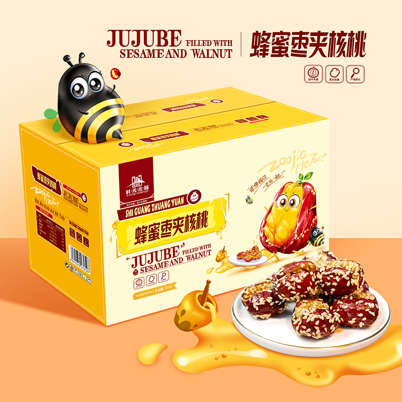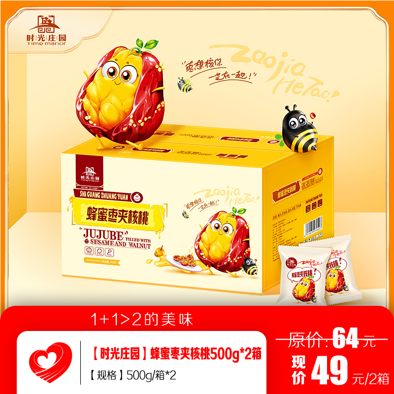【时光庄园】蜂蜜枣夹核桃 芝麻无核整箱礼盒独立包装 500g*2箱